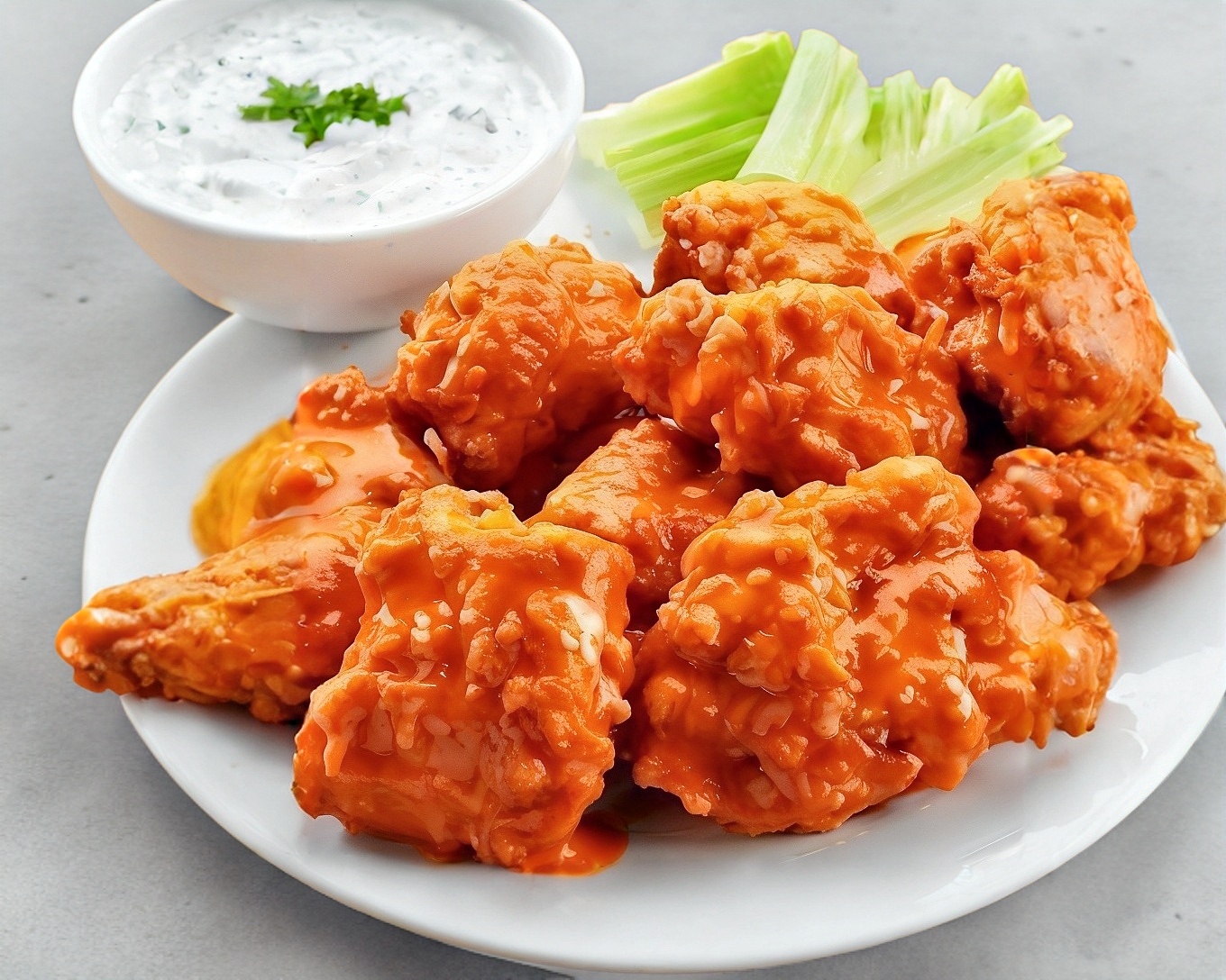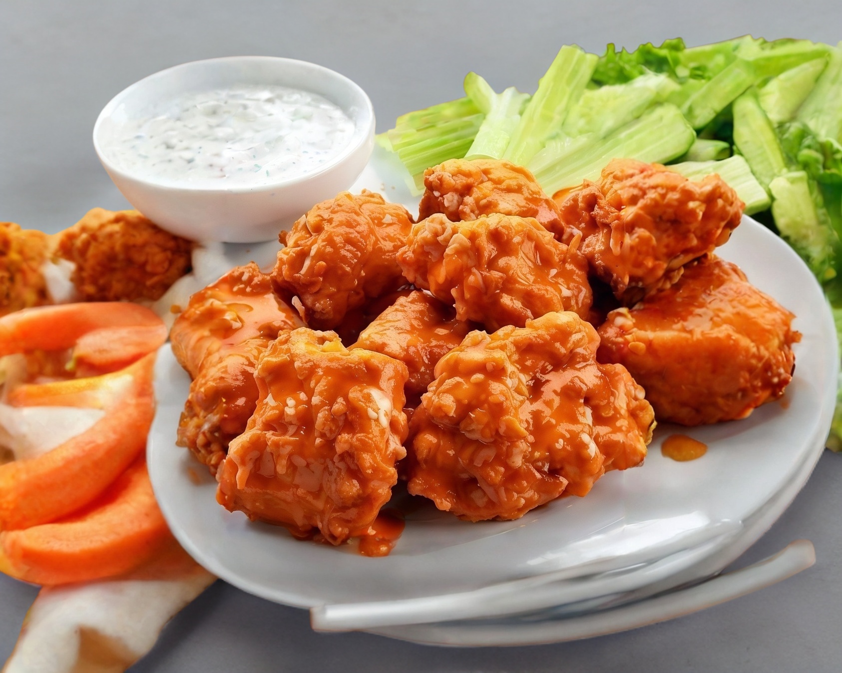 8 Boneles bañados en salsa de tu preferencia+aderezo ranch