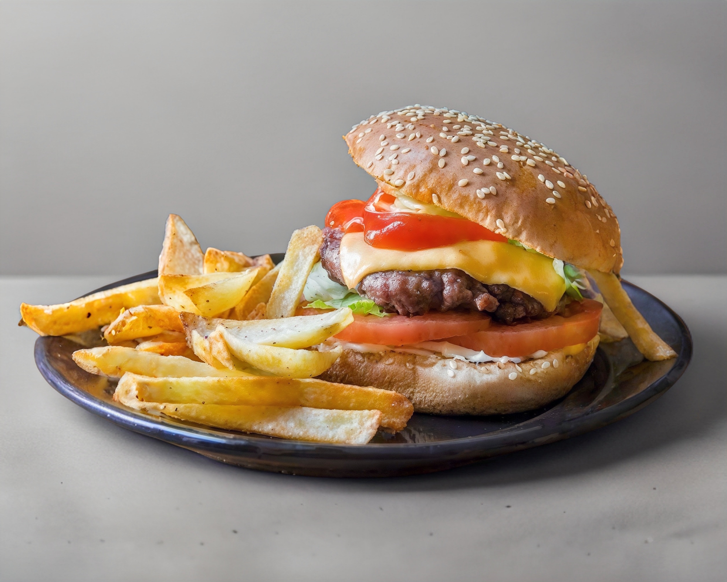 Refrescos 600ml*1 + Media Orden de Papas a la Francesa*1 + Hamburguesa Doble :)*1