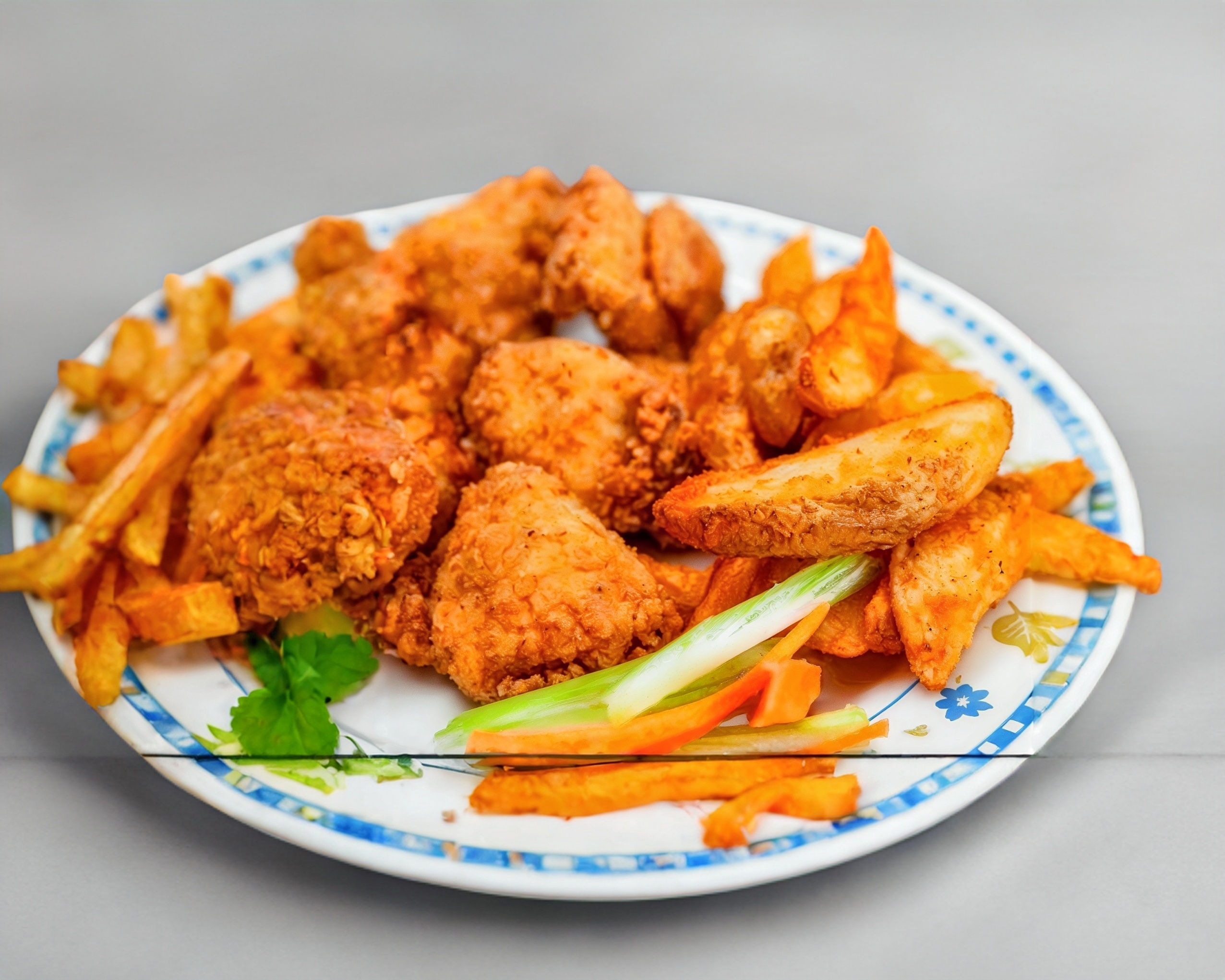 20 Boneles Grandes,3 salsas,aderezo,verduras,papa gajo y 1 te