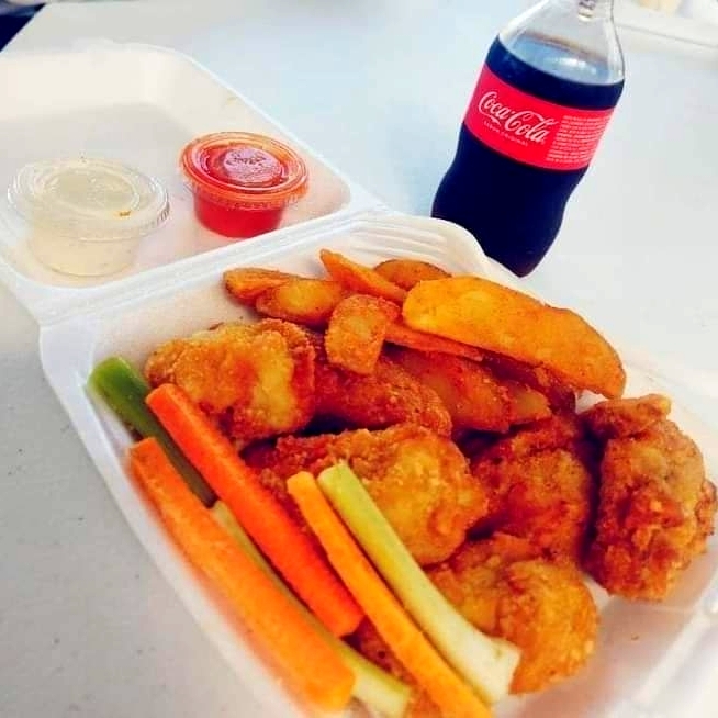 Media órden de Boneless GRANDES acompañada de Papas Gajo + 1 aderezo y 1 Coca Cola 355 Ml.