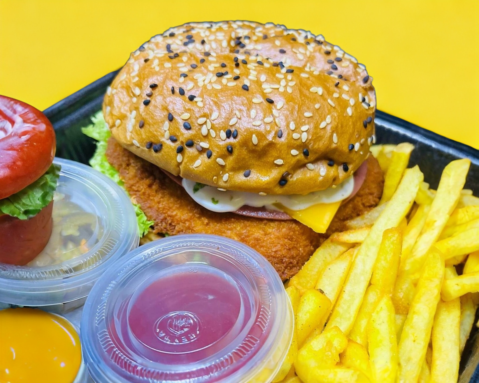 Boneless con salsa a elegir, tomate, lechuga, aguacate, queso amarillo y jamón.