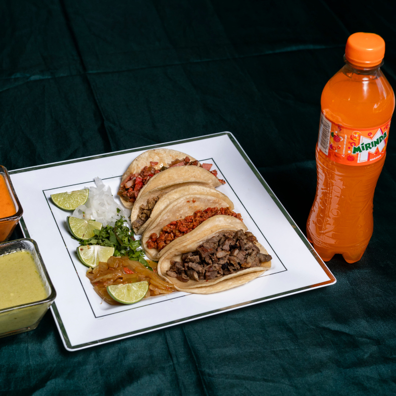 4 Tacos más 1 Refresco de Sabor de 400ml
