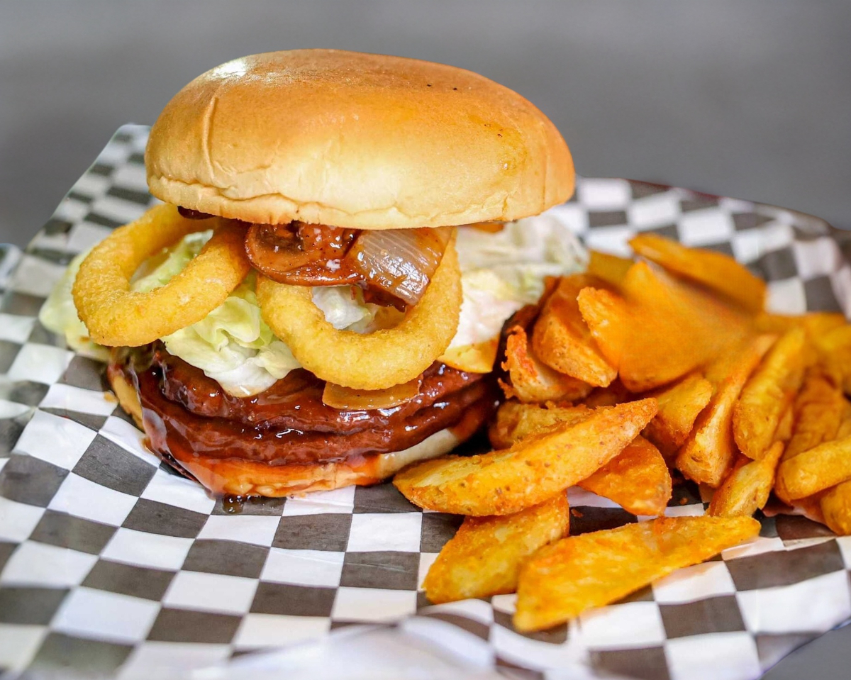 Coronada con 3 aros de cebolla y bañada en nuestra deliciosa salsa BBQ