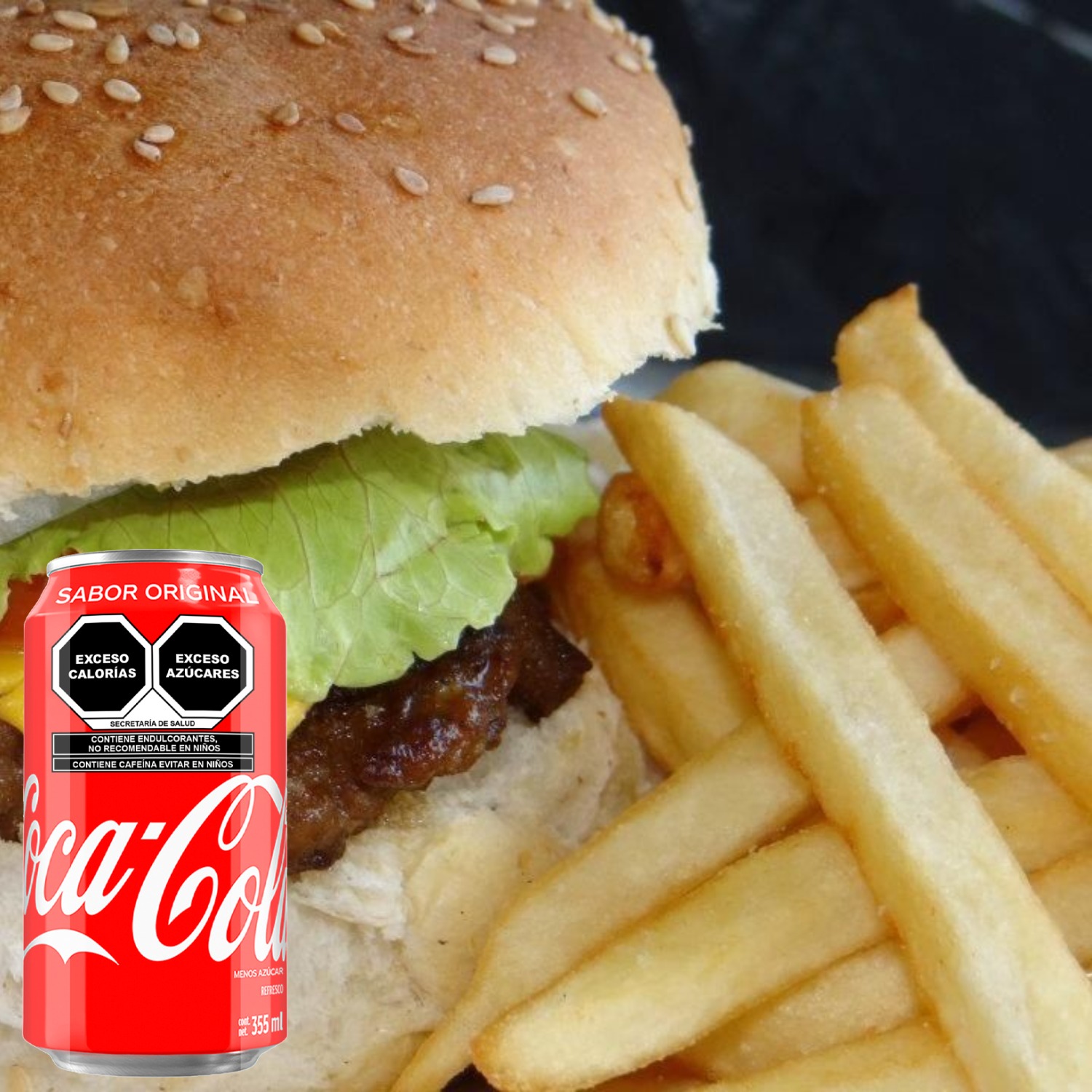 Hamburguesa Doble con Papas y Coca Cola 355 ml