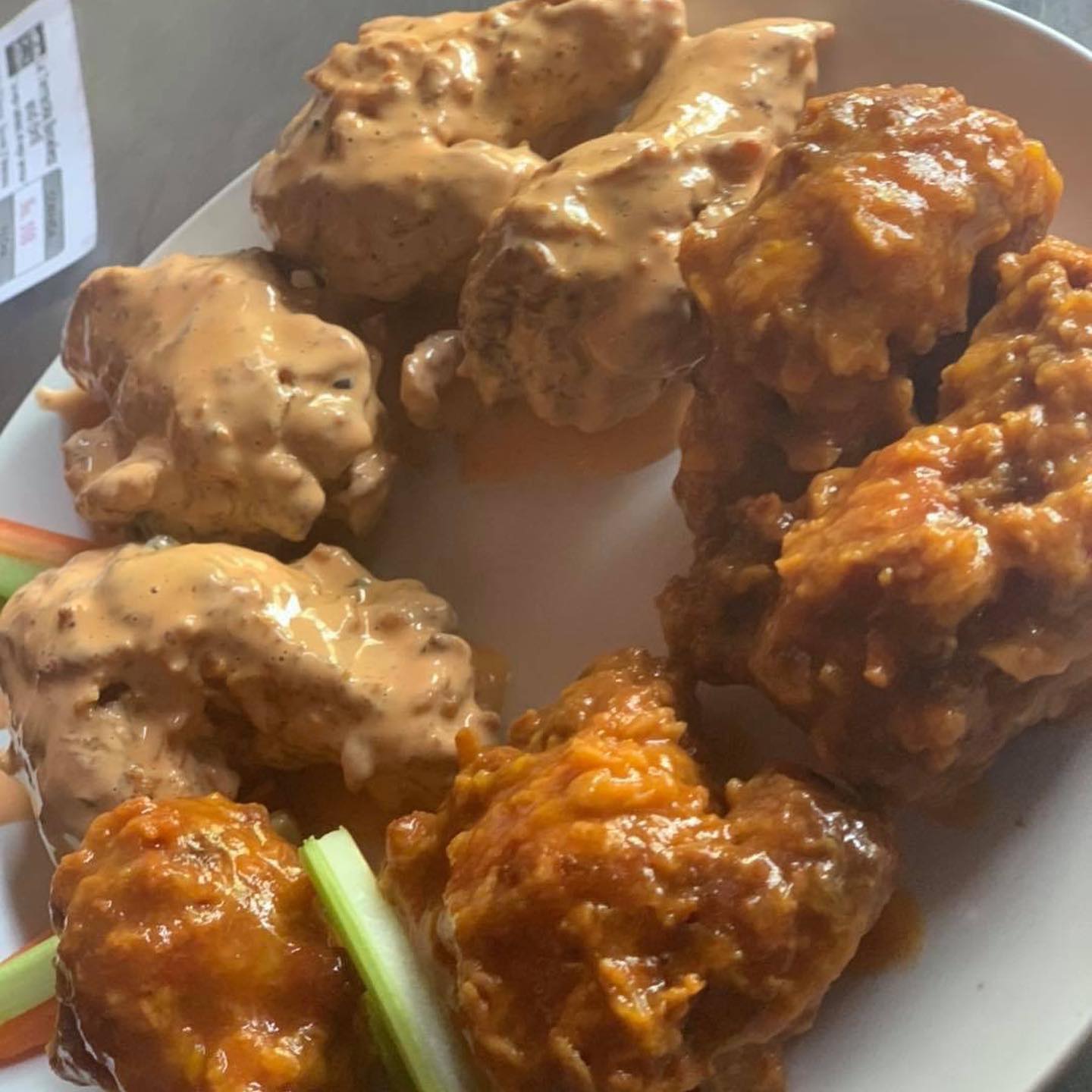 Personal, 10 boneless (500 g peso en crudo) bañados en la salsa de tu elección (sin aderezo). 🥕 Porción personal de zanahoria y apio