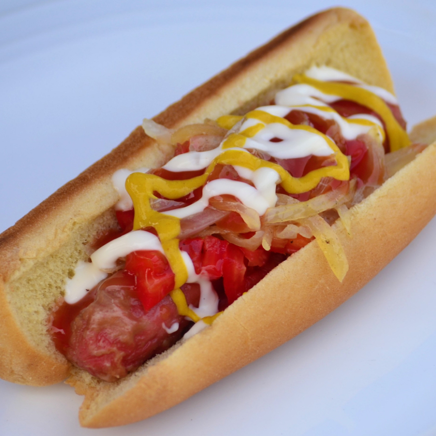 2 Ricas carnes con queso amarillo, jamón y sus cremas. Además de tomate, lechuga y una cebolla de la casa preparada a base de chipotle.
