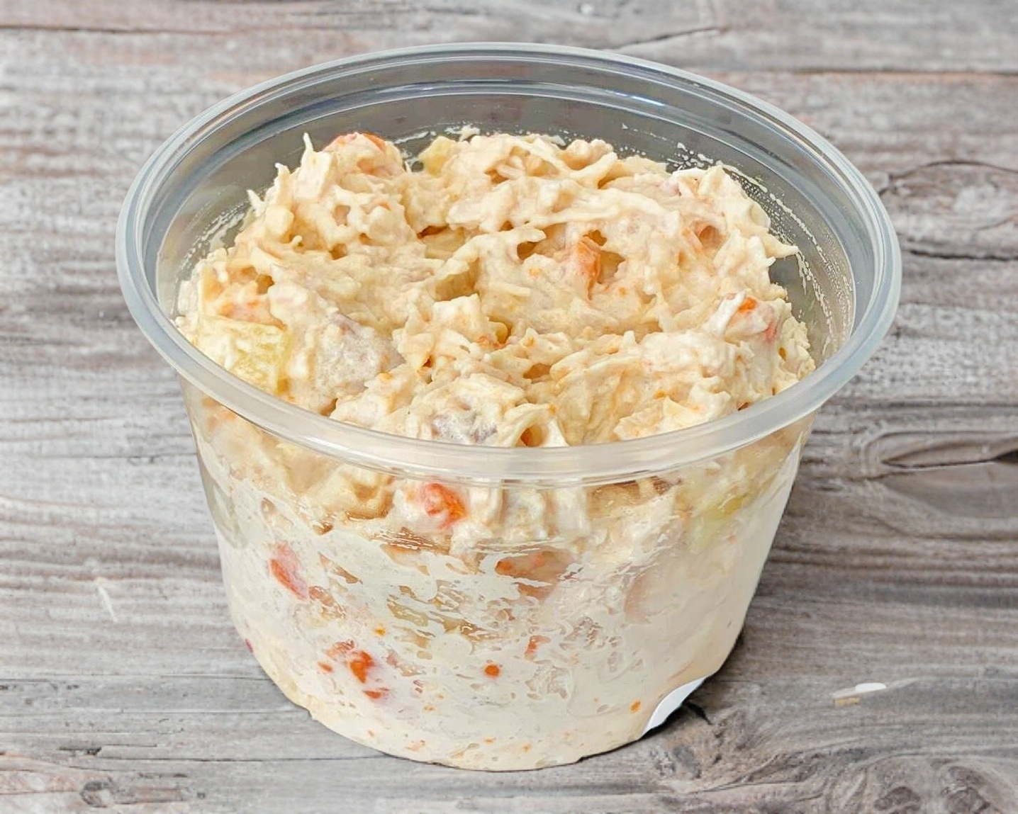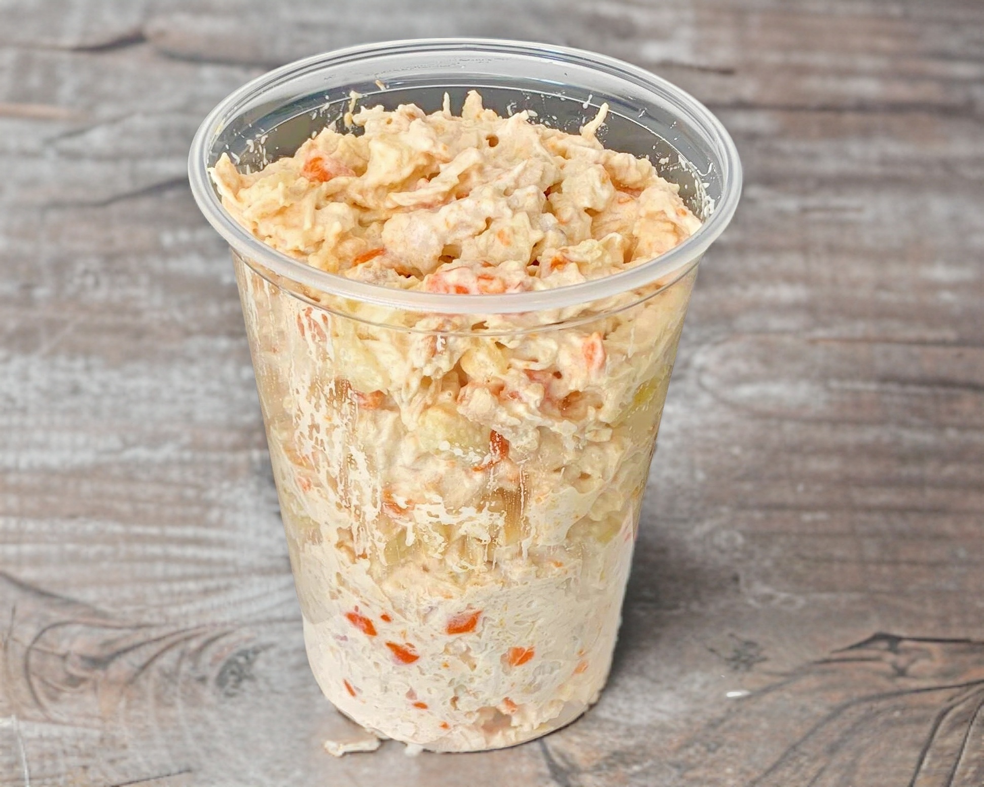 1/4 de ensalada de pollo (pechuga de pollo, mayonesa, papa, chicharos y zanahoria).