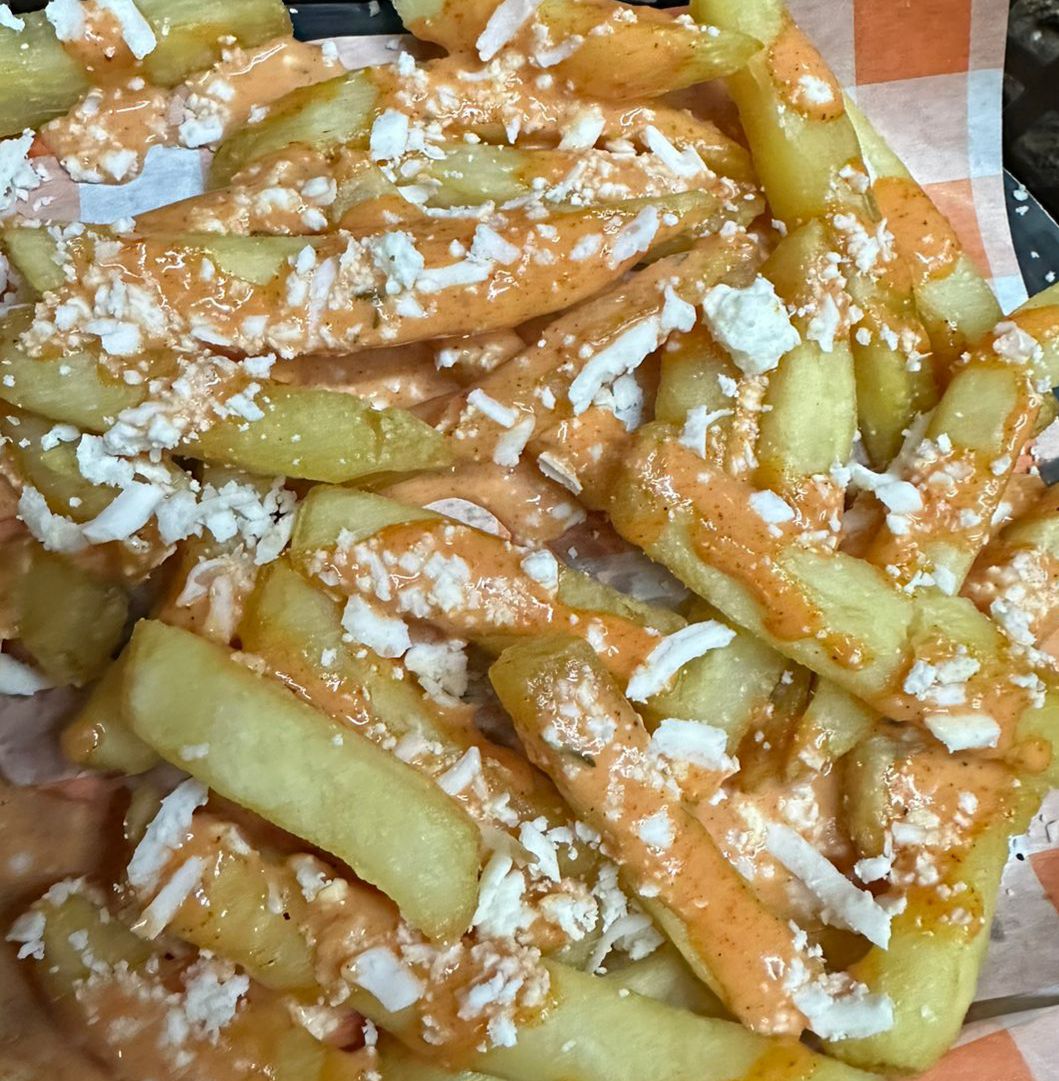 Papas a la francesa habanero-ranch, con aderezo de la casa.
