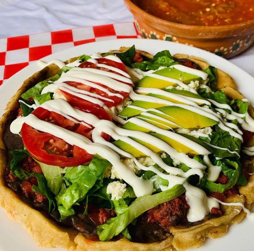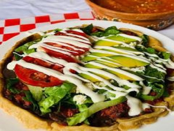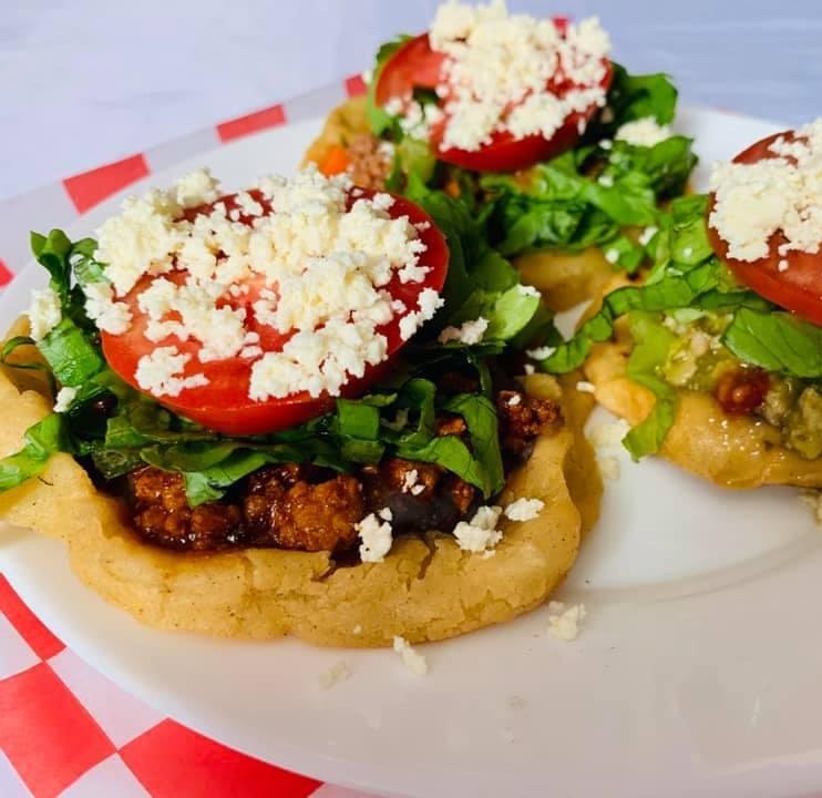 Bolillo partido en dos mitades, untado con frijoles refritos, cubierto con queso gratinado y guiso a elegir, acompañado de pico de gallo fresco. Un clásico completo y bien servido.