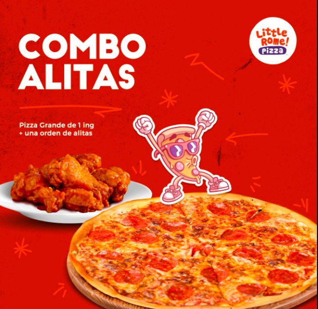 Arma tu Pizza con dos ingredientes a elegir. La pizza va acomapaña de Bolsitas de Chile quebrado.