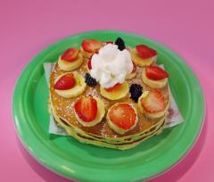 3 Hot Cakes Con Fruta con Licuado de Plátano