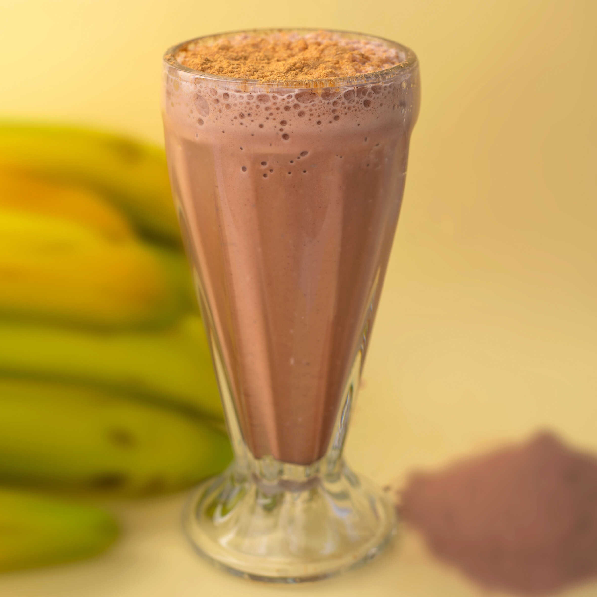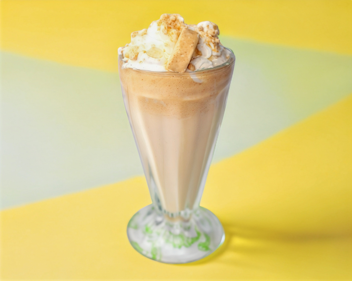 Delicioso licuado de café, fresa, chocolate, crema de cacahuate y plátano.