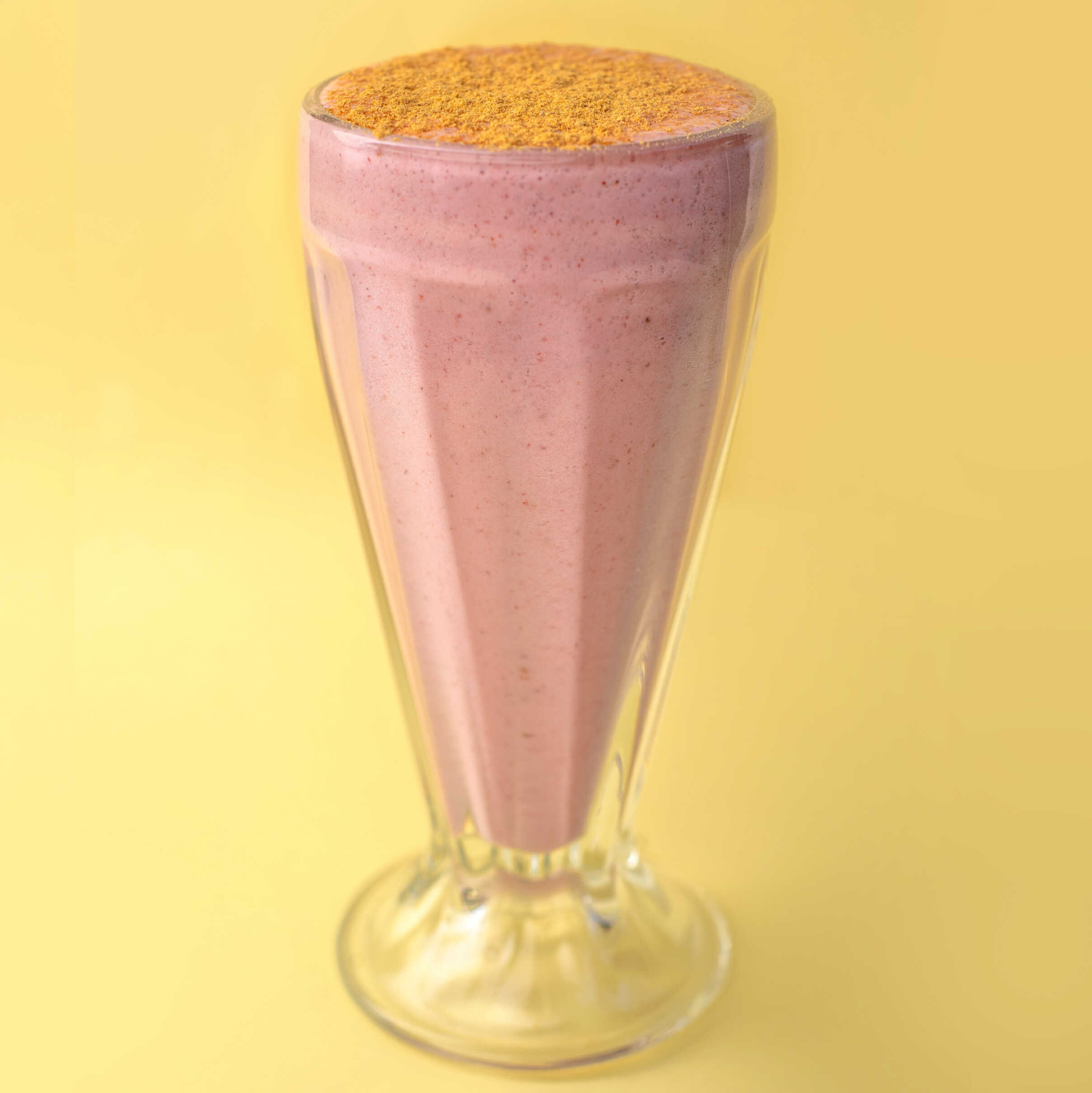 Cremosa con sabor especial, lleva helado de fresa y fresa natural, con crema batida, chispas y cereza.