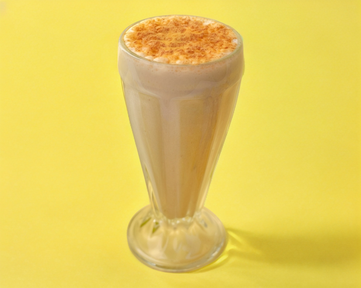 Delicioso licuado de Mazapán, con crema batida, receta especial de la casa.