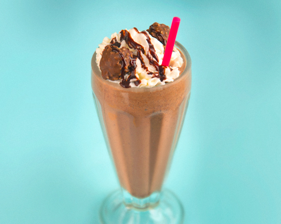 Espesa y con intenso sabor a chocolate, hecha con helado de chocolate, crema batida y chispas.