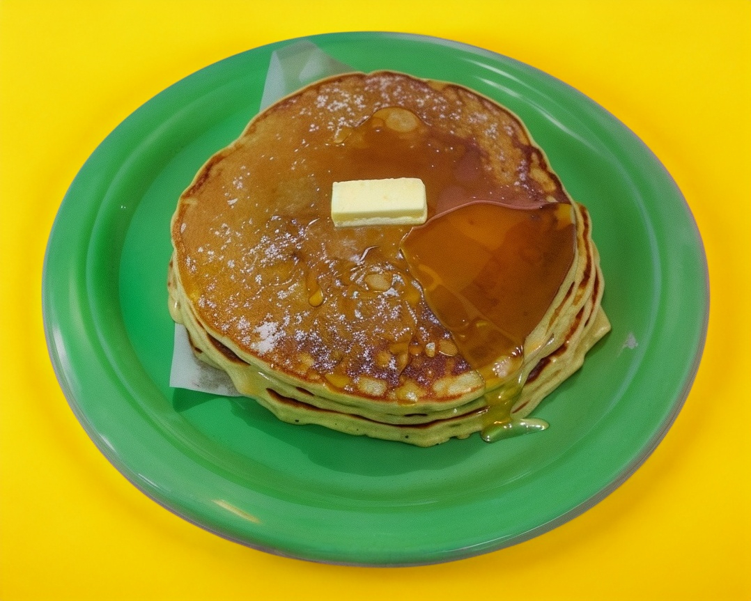 Receta casera, 3 hot cakes calientitos con mantequilla y miel, o mermelada: