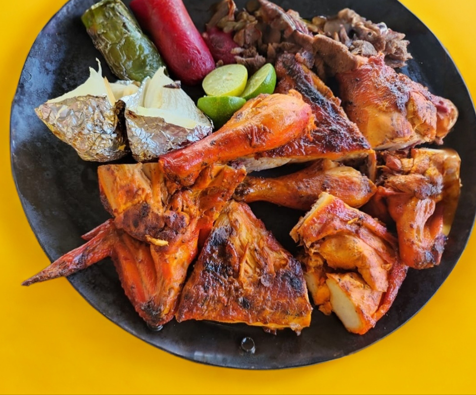 1/2 Pollo Asado*1 + 1 Pieza de Salchichón Asado*2 + Orden de Cebolla Asada*1