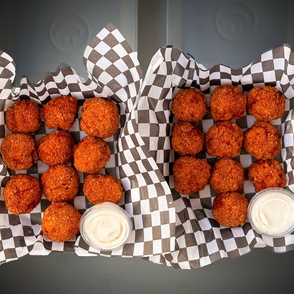20 Boneless bañados en tus 2 salsas favoritas, acompañado con 2 ranch