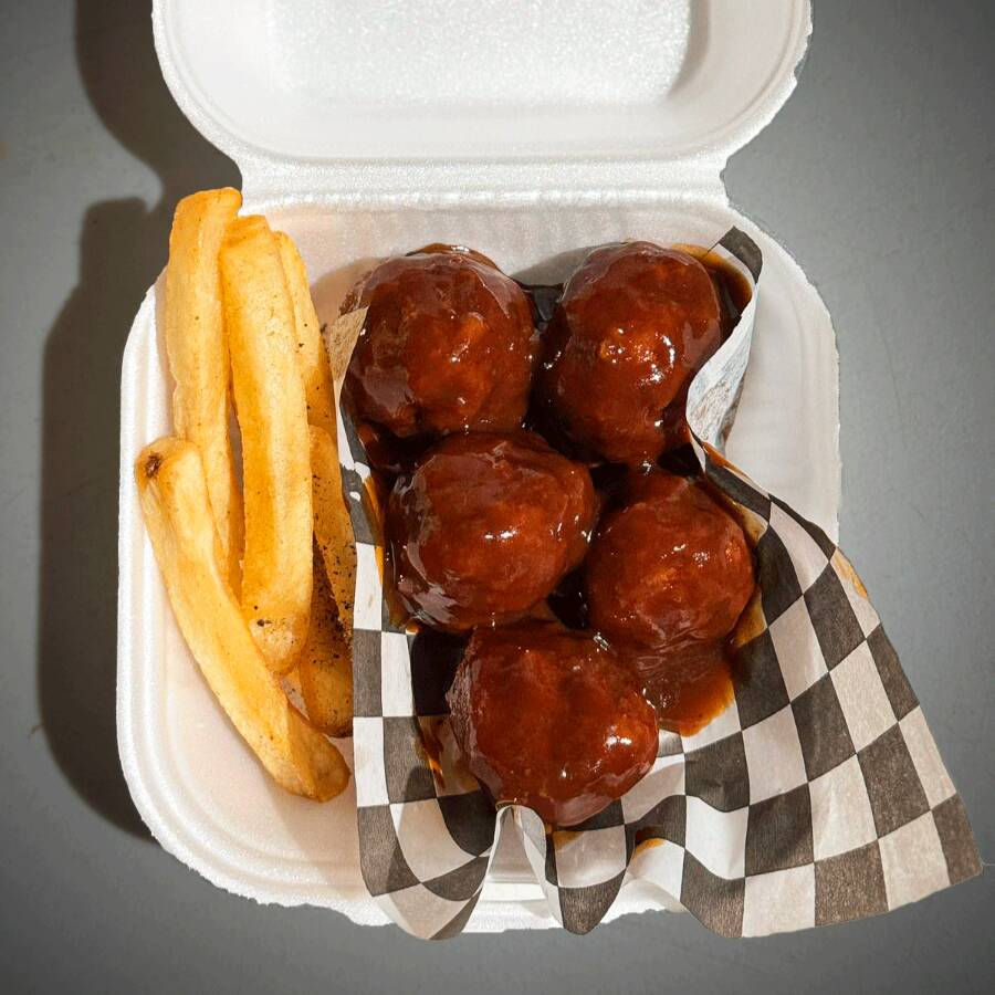 5 Boneless bañados en tu salsa favorita, con porción de papas francesas