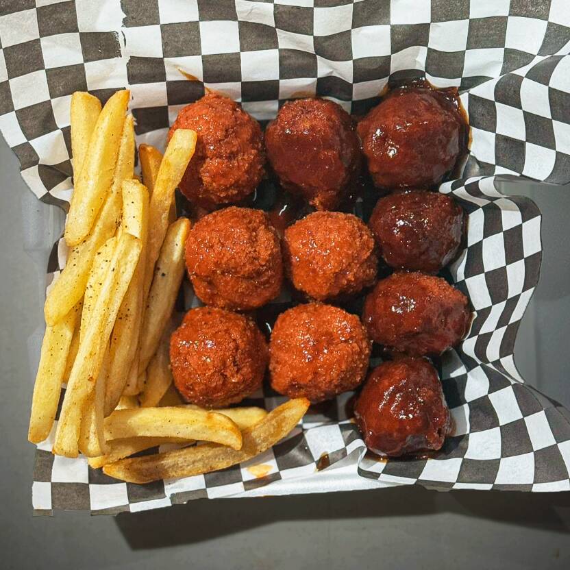 10 Boneless bañados en tus 2 salsas favoritas con porción de papas francesas + 1 ranch