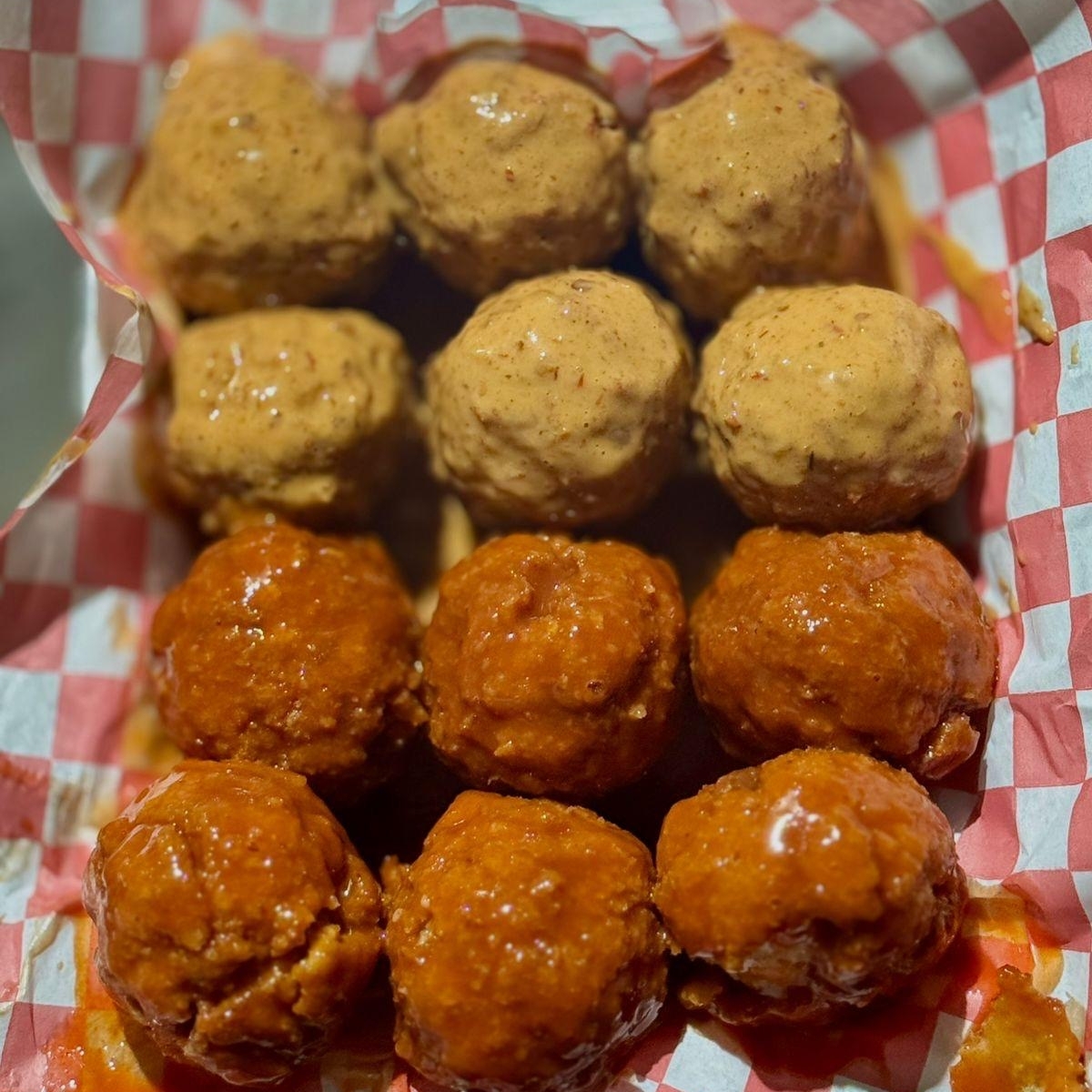 12 Boneless bañados en tus 2 salsas favoritas acompañado con 2 ranch