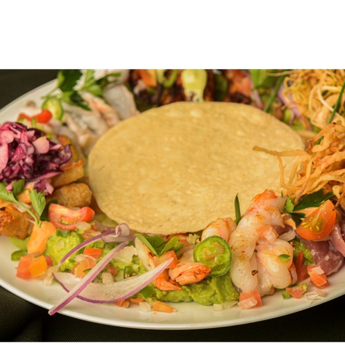 Degustación de nuestra mejor selección de mariscos sobre un guacamole tradicional acompañado de tostadas.