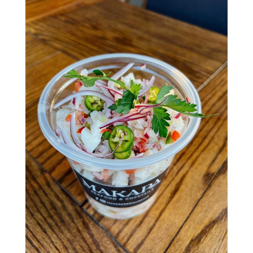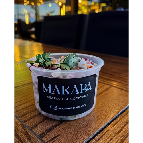 1/2 Litro de filete de pescado macerado en jugo de limón, acompañado de chile serrano, cebolla, tomate y cilantro.