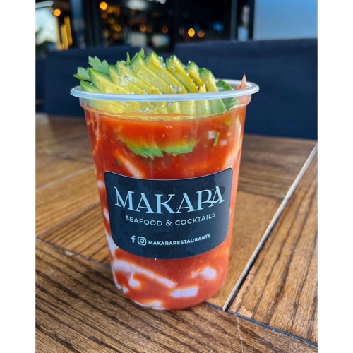1/2 Litro de coctel de camaron con nuestra salsa de la casa ligeramente picante, acompañado de aguacate y pico de gallo.