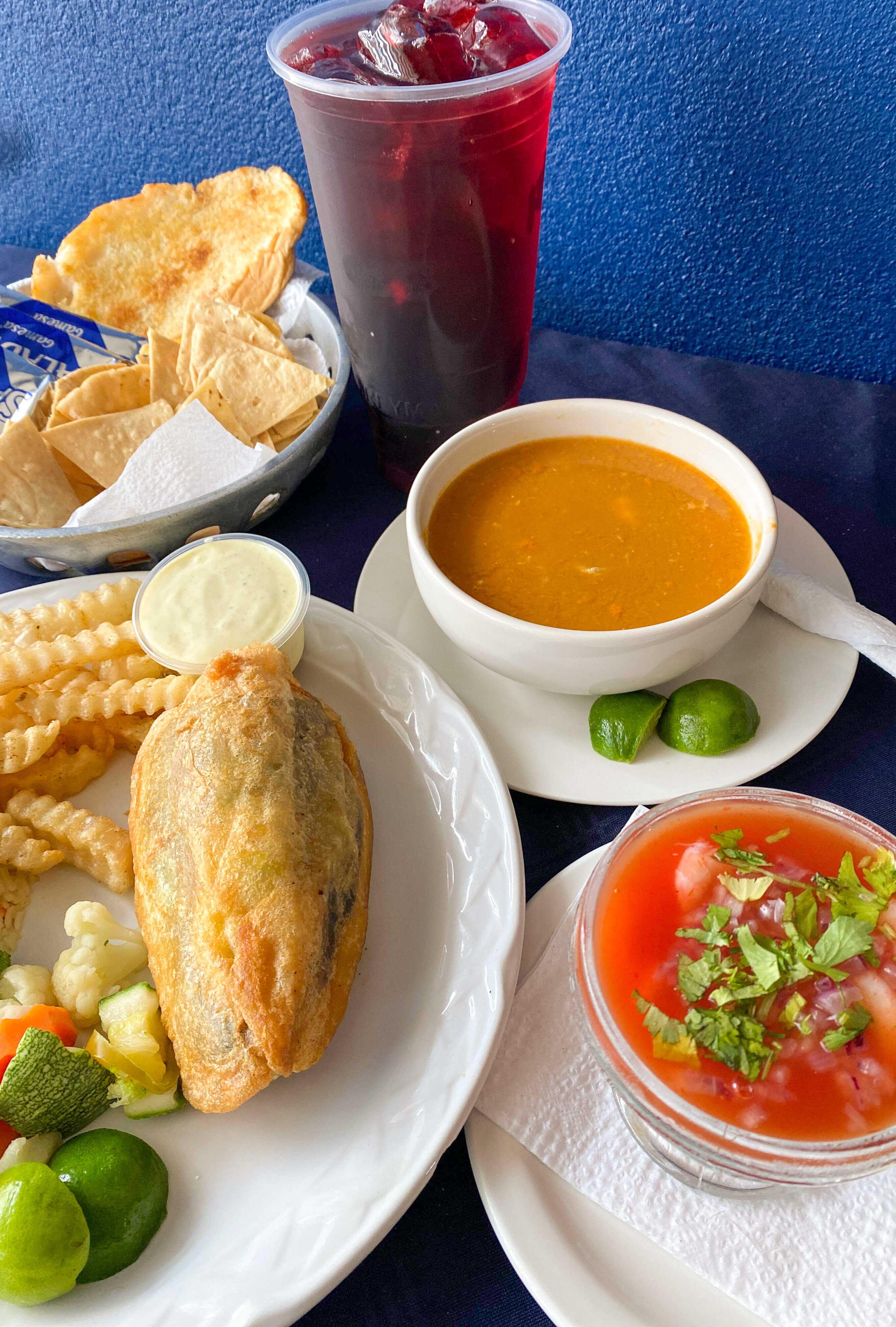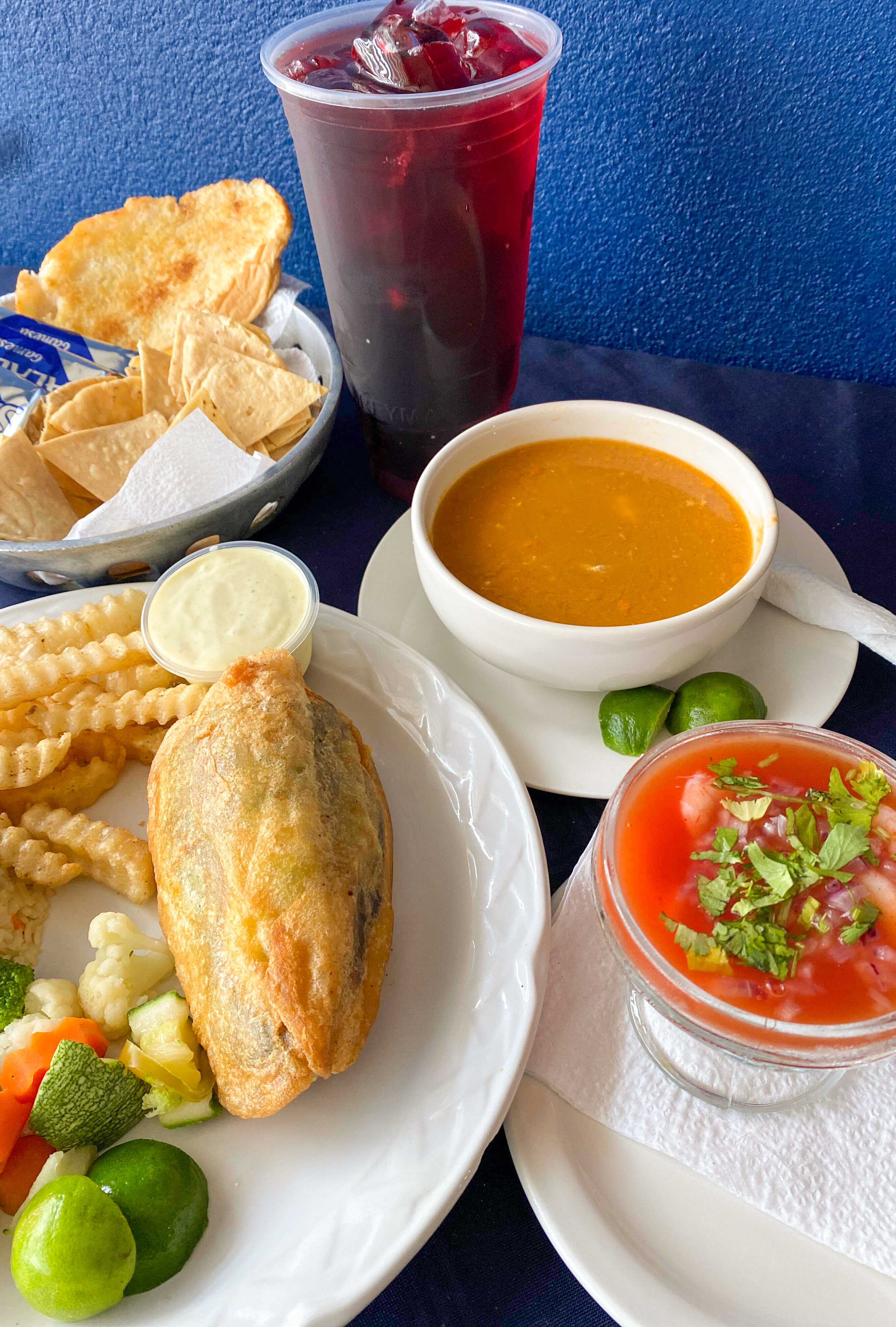1/2 de Filete de Lisa Empanizado*1 + Medio de Caldo de Pescado*1 + Agua Fresca Natural 1 Litro*1