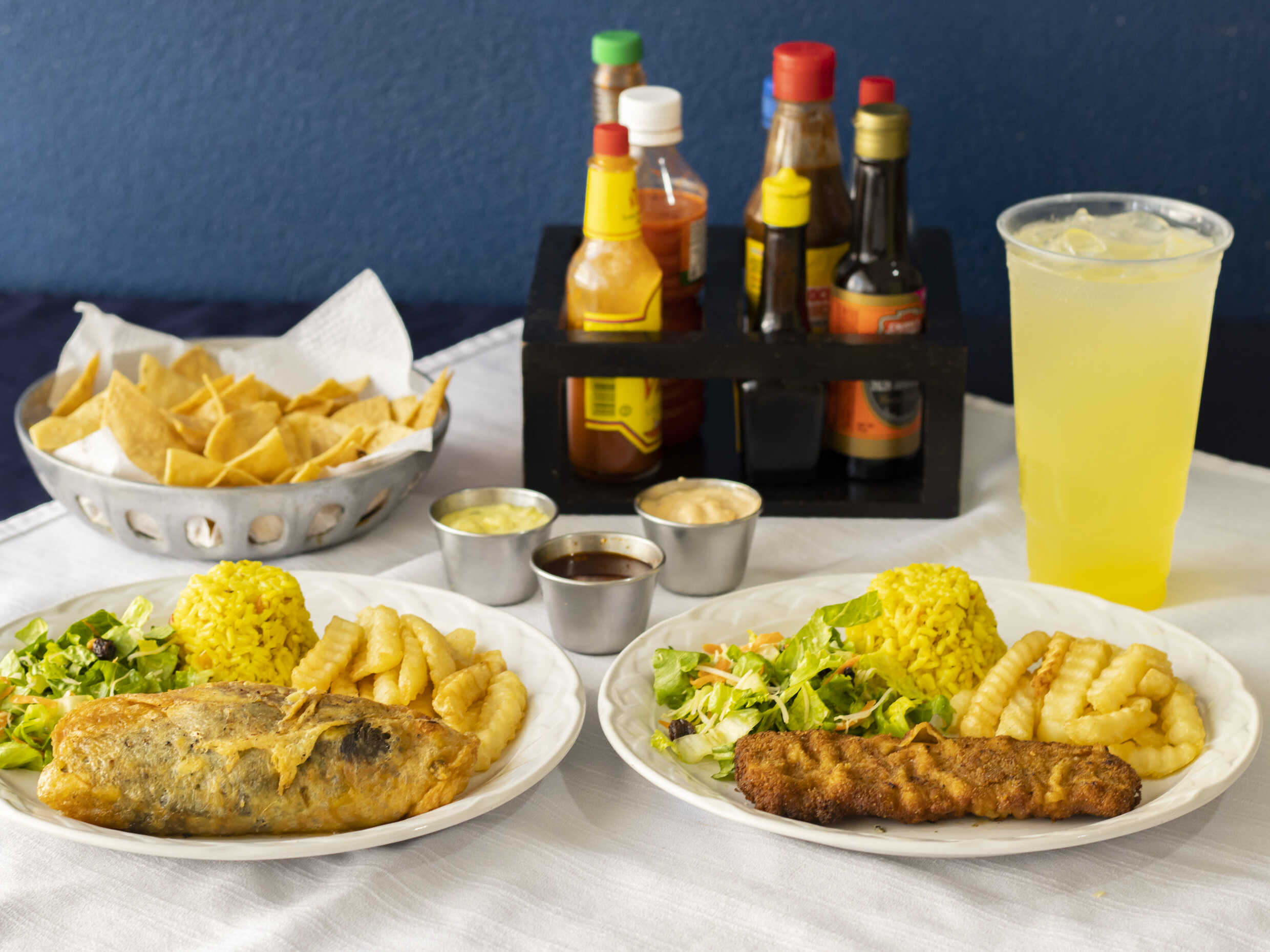1/2 de Filete de Lisa Empanizado*1 + Agua Fresca Natural 1 Litro*1 + 1 Chile Relleno de Queso y Arroz*1
