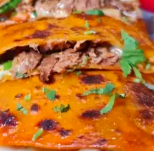 Estilo volcan tamaño grande de maíz con tapas, de birria trae verdura y salsa aparte.
