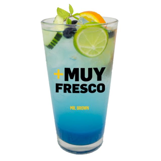 JUGO DE LIMON, BLUE SUGAR, SEVEN UP, PEPINO, NARANJA, BLUEBERRIES Y MENTA