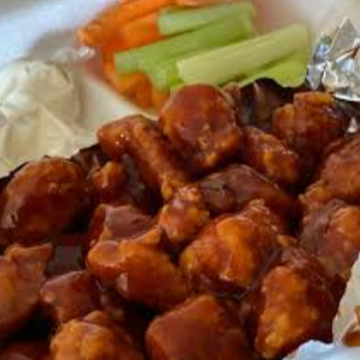 18 pzas De boneless crunch por fuera y jugosos por dentro, con opción de elegir 2 salsas favoritas, mango habanero, búfalo, búfalo ranch o BBQ.