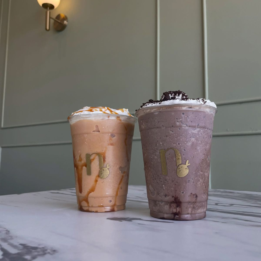 Frappe taro frio de 12 oz con leche entera o deslactosada.