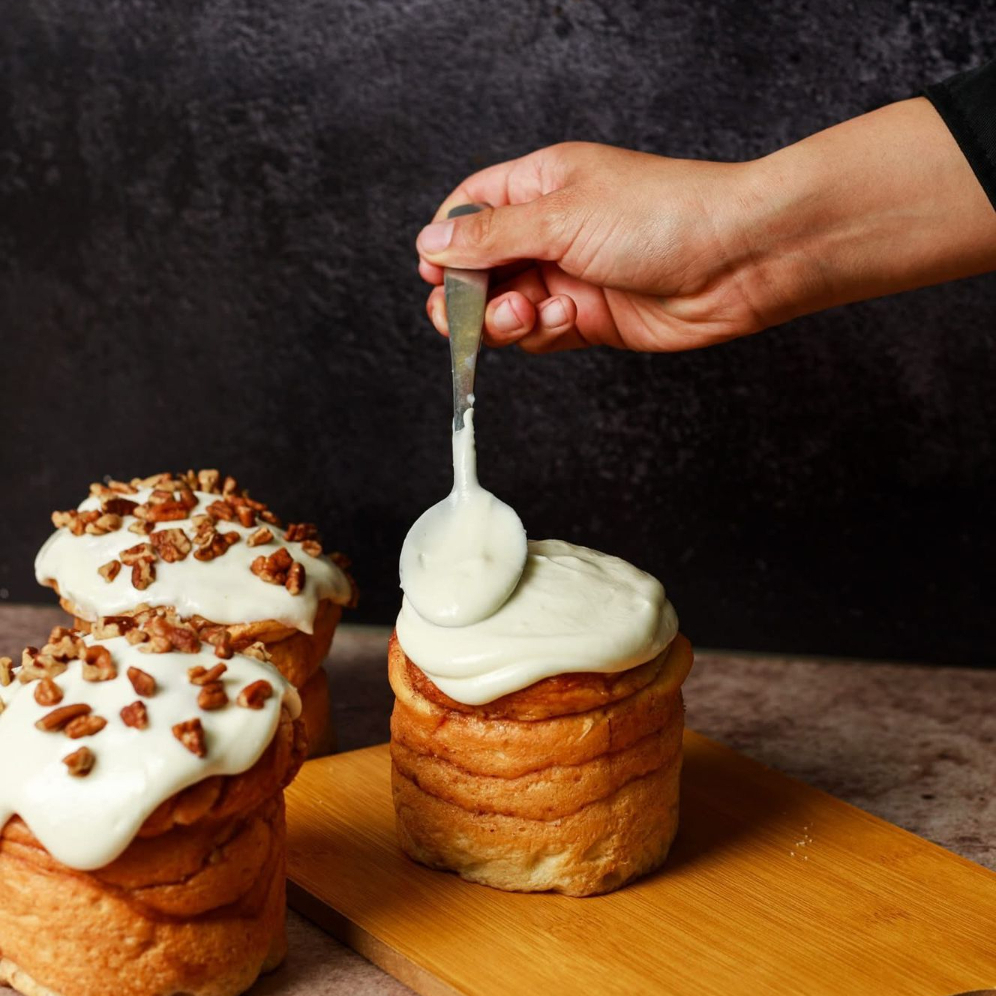 Roll de canela horneado con cubierta de Nutella.