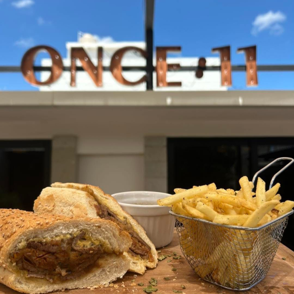 Carne de res angus prime, queso americano, tocino crujiente y mezcla de mayonesa con cátsup y pepinillos. Guarnición de papas fritas.