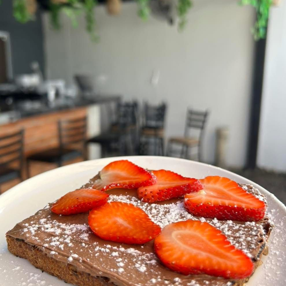 Pan de masa madre, huevo estrellado, jamón de pierna, queso y papa hash brown.