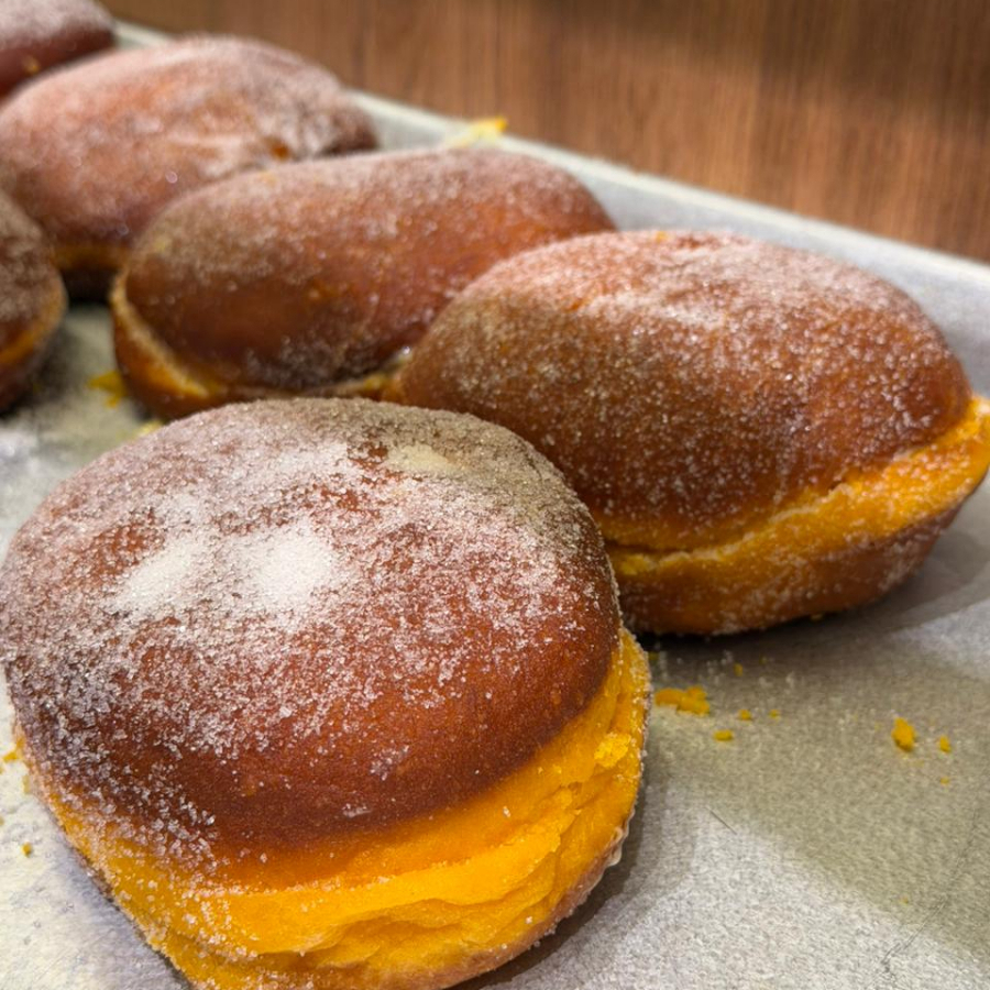Enamorado suave y esponjoso relleno generoso de crema pastelera.