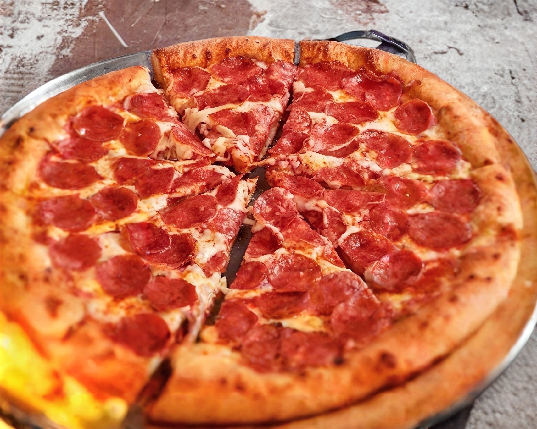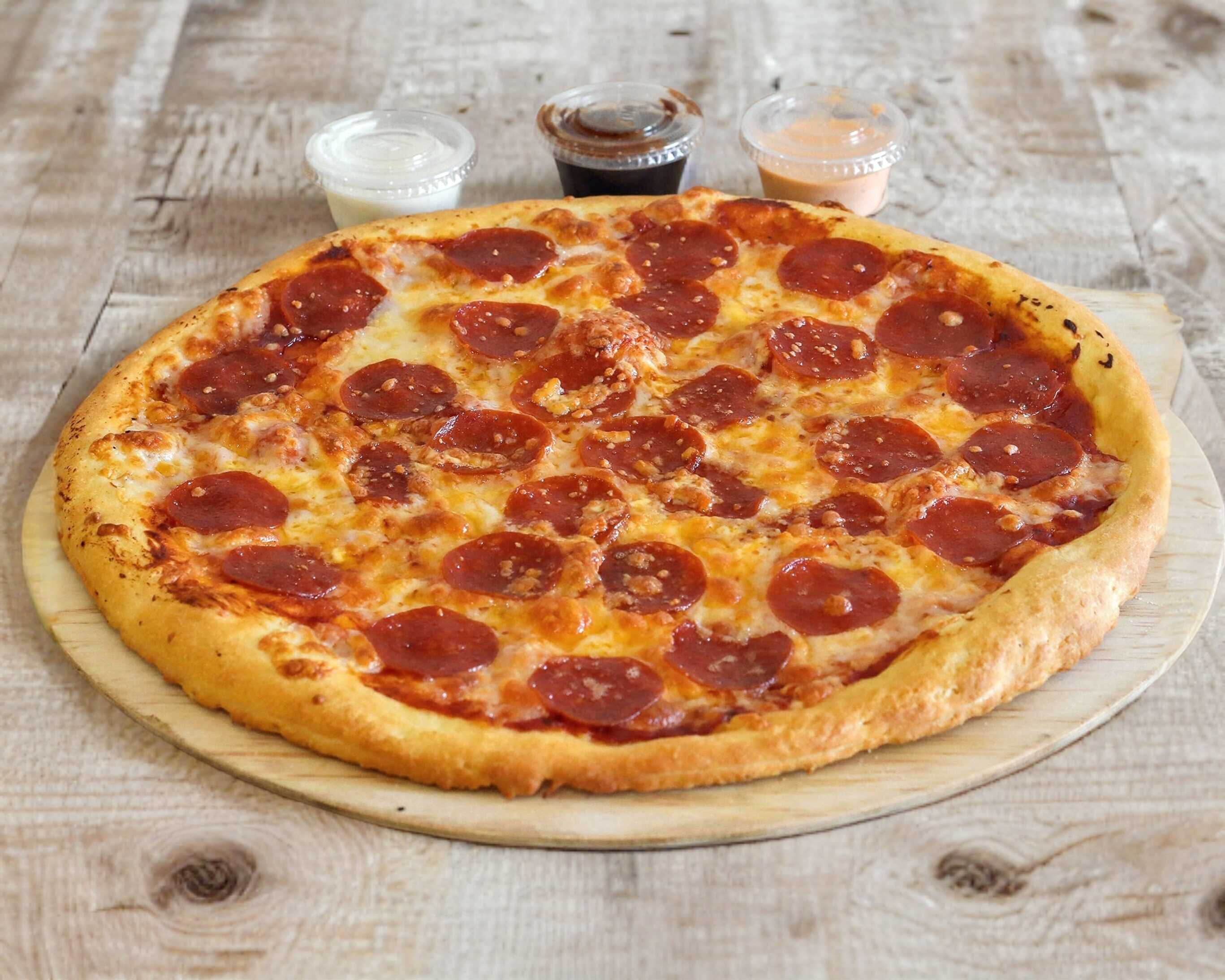 Deliciosa pizza grande 35 cm, de pepperoni y queso mozarella