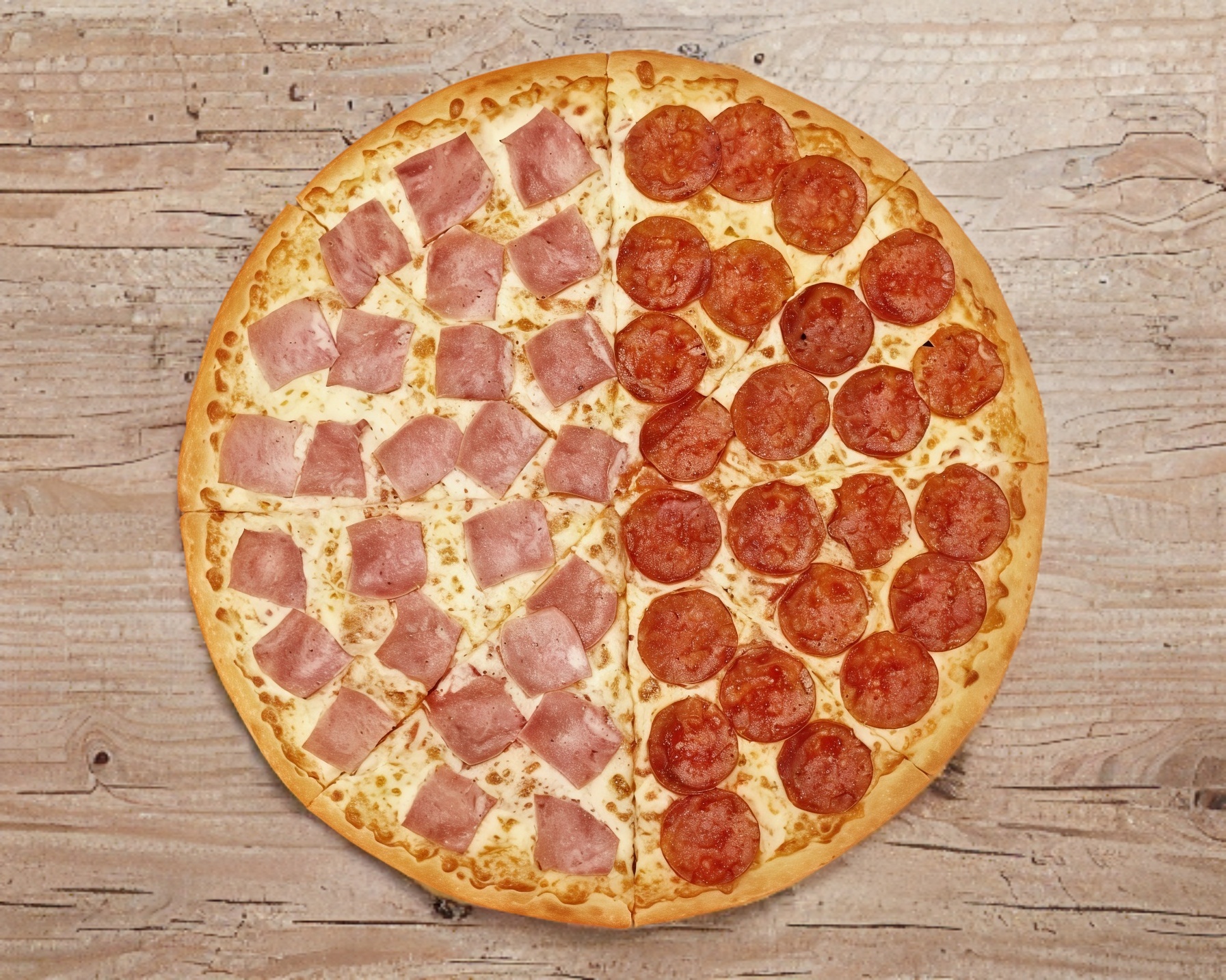Pizza Grande Mitad Extra Pepperoni Premium y Mitad Queso Mozarella