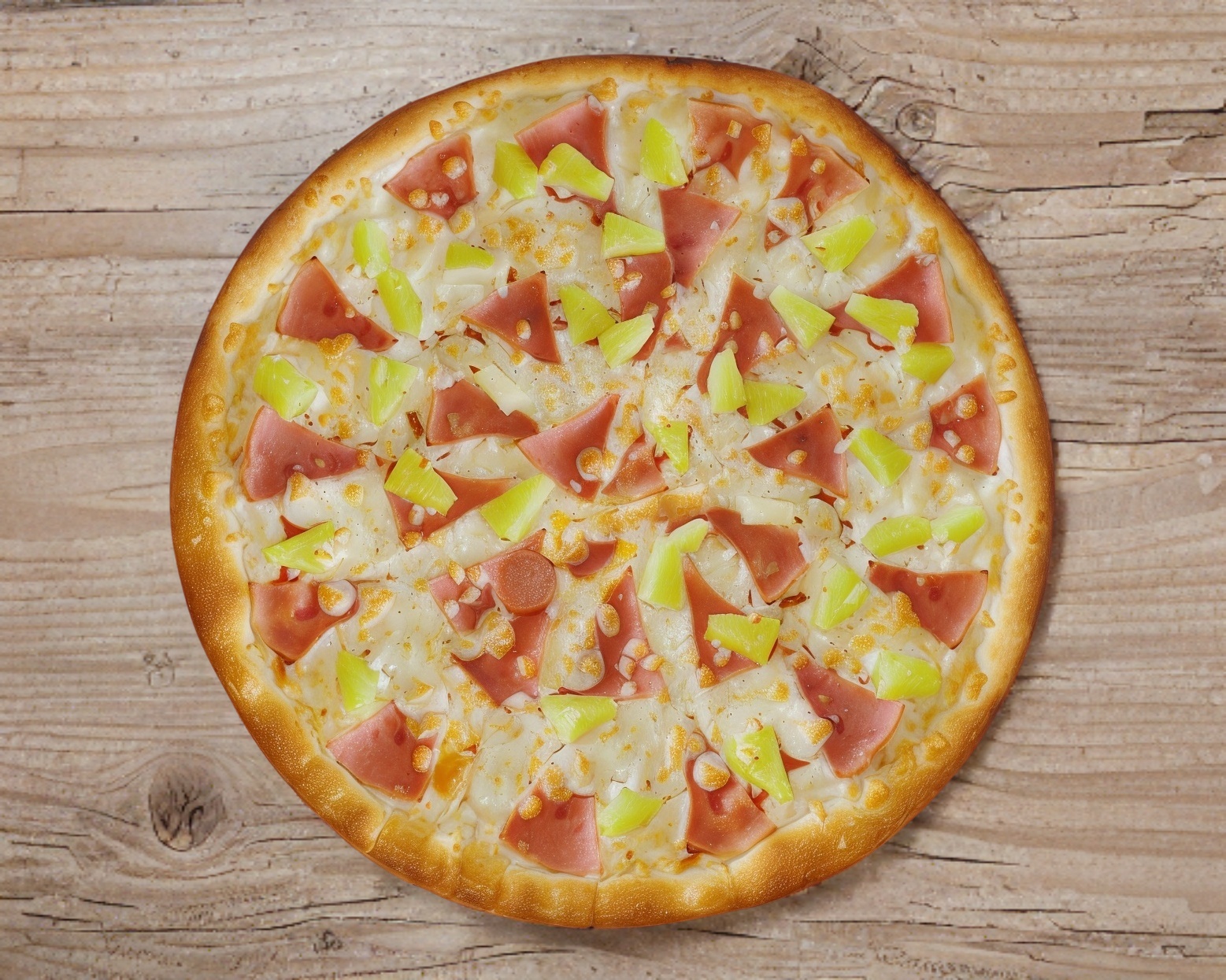 Pizza grande de 35 cm, hawaiana (Jamón y piña), queso mozzarella.