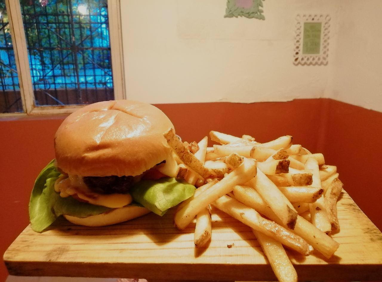 Carne de arrachera, queso americano y vegetales. Incluye papas a la francesa.