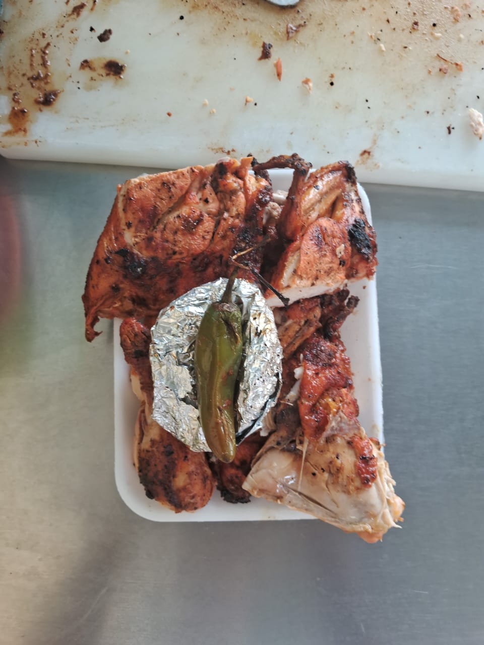 1/2 Pollo Asado*1 + Salchicha Roja*1 + 1/4 de Frijoles Charros*1