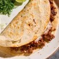 Carne, queso, salchicha y 1 cebollita asada en tortilla de harina de 25 cm.