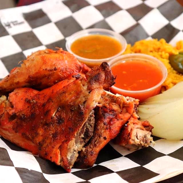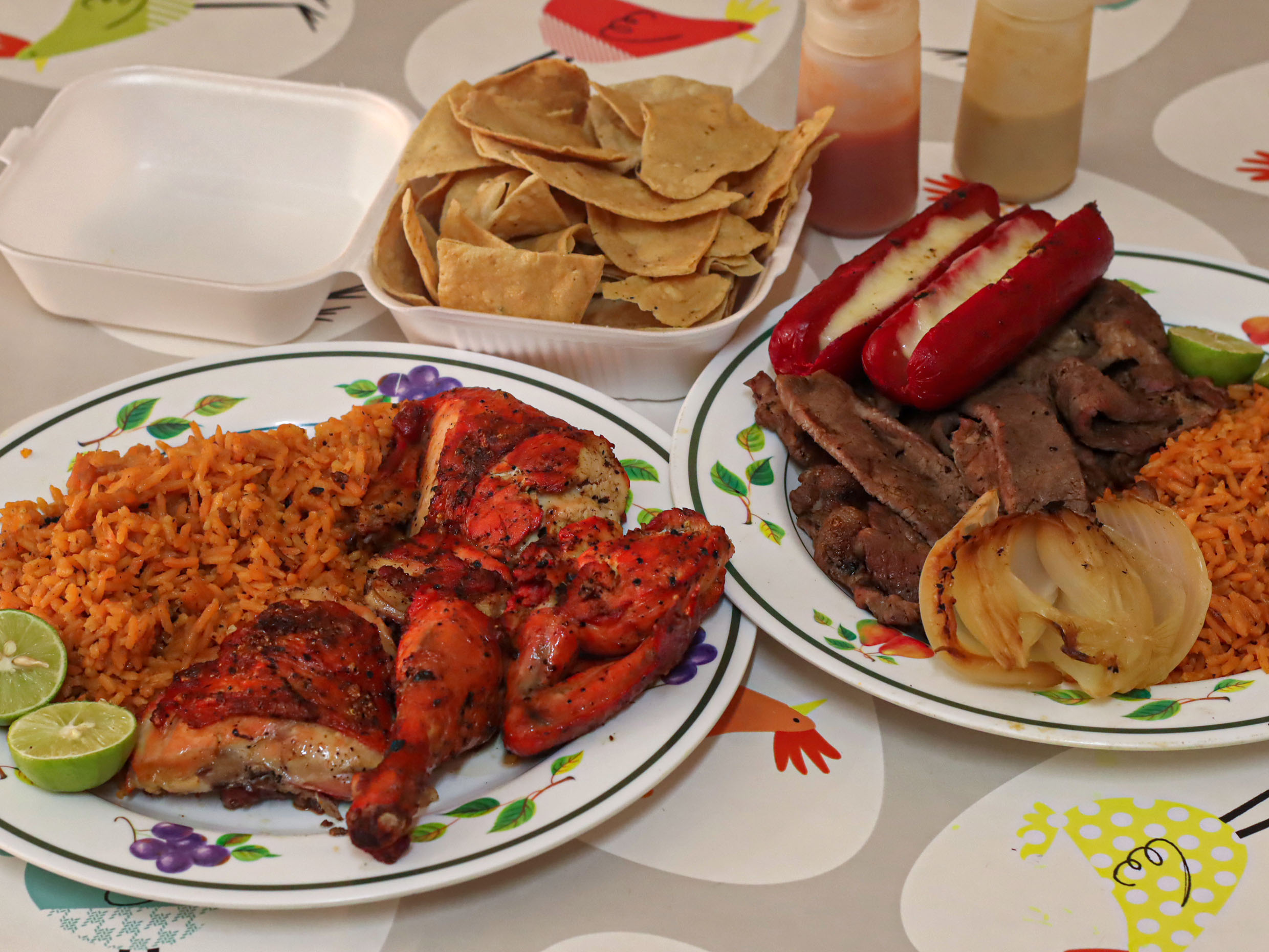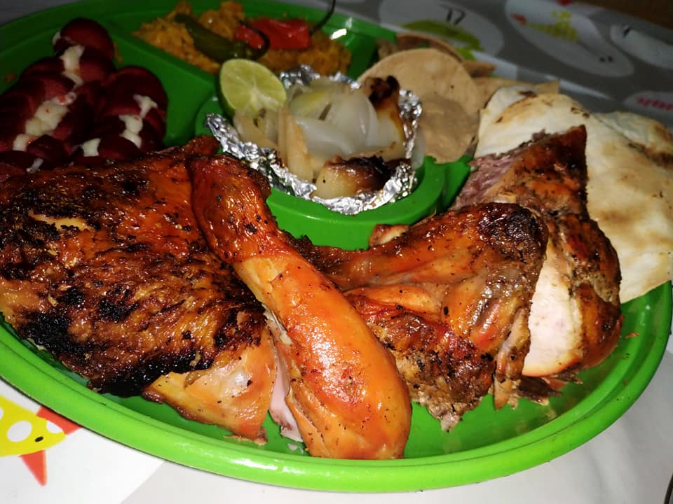 Riquísimo Pollo Entero, acompañado de todos sus complementos y te le agregamos una órden de salchichas.