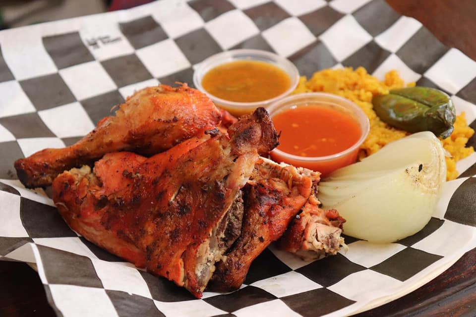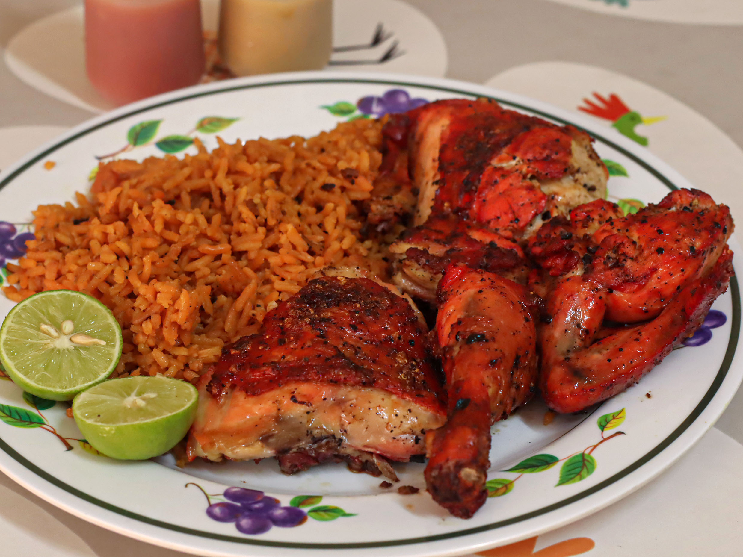 Riquísimo medio pollo acompañado de sus complementos, además en promoción sus frijoles y una salchicha.