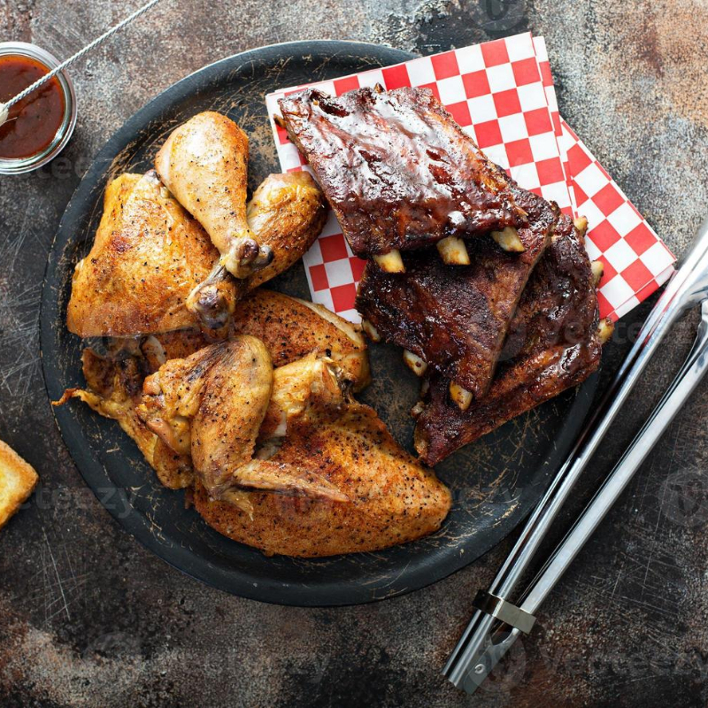 MEDIO POLLO + 250 GRS DE COSTILLA + 1 CHILE RELLENO + 1 SALSA TATEMADA