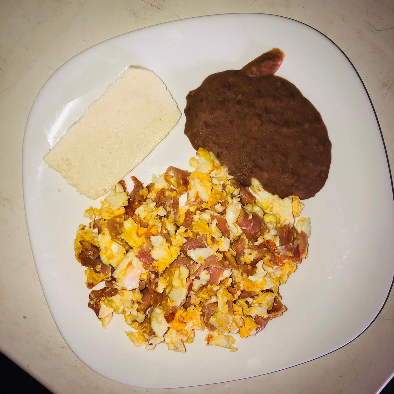 Variedad de huevos que va acompañado de frijol, queso, aguacate aparte contiene 4 tortillas recién hechas.