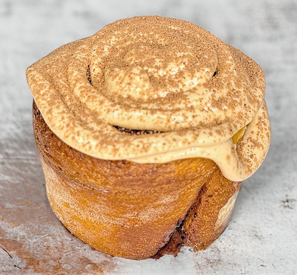 Rol de Canela con cubierta de glaseado sabor capuccino y un toque de cocoa
