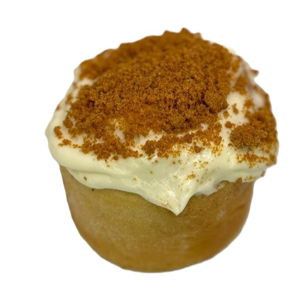 Rol de crema de jengibre con glaseado de queso crema y galleta lotus espolvoreada